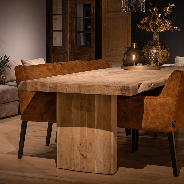 Wanneer je aan landelijk interieur denkt, denk je waarschijnlijk al snel aan een houten tafel. Wij snappen heel goed waarom. Natuurlijke materialen, waaronder hout, staan namelijk centraal in een landelijk interieur. Een houten tafel met een robuust blad past helemaal binnen deze woonstijl, zoals de Bruuts Melrose eettafel.